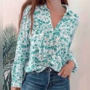 Maeve Anthropologie Green Floral Print Button Down Blouse Size Small