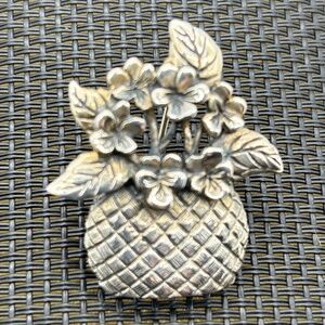 Sterling Silver Basket of Flowers Pin, James.H. Breakell, Newport, R.I., Signed~