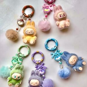 Add a splash of color to your bag or keys with these adorable fuzzy Labubu bag charms.