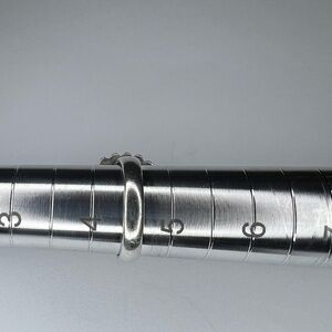 This preowned vintage sterling silver ring features a striking domed centerpiece, framed with delicate twisted and looped accents. Stamped “Sterling” on the inside of the band, it confirms its authenticity as genuine silver. The ring size is 4.5 (US), making it a perfect fit for petite fingers or as a unique pinky ring. Ideal for collectors of vintage jewelry or those seeking a bold yet elegant statement piece. The smooth, polished dome gives it a timeless appeal, while the decorative detailing adds a touch of charm.