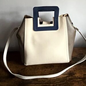 • Eye-catching colorblock design in cream, taupe, and navy