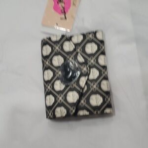 Betsey Johnson black white skull print heart shaped closure lock trifold wallet