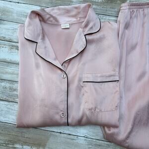 SilkSilky Pajama Set Sz Sm 2 Piece Button Up Pants Pastel Pink 200% Silk Luxury