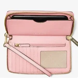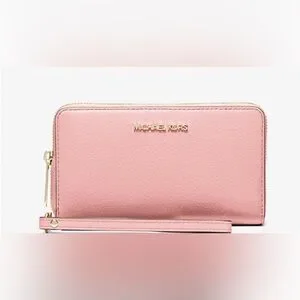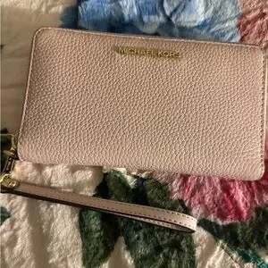 Chic Michael Kors pebbled leather wristlet/wallet in blush pink. Sleek and stylish design. Perfect for everyday use.