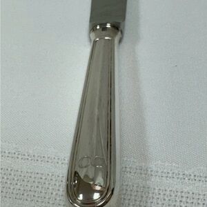 Cheese knife by Christofle with two teeth on the end to pick cheese off of a cheese plate. Albi pattern.