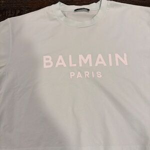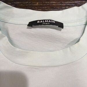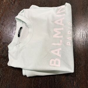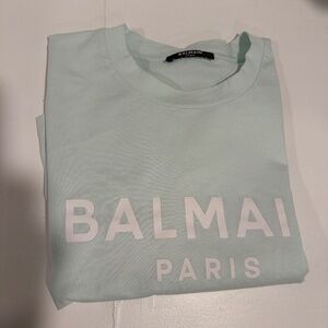 Balmain mint green cotton tee shirt with white logo. Made in Portugal. 100% cotton.Like new!