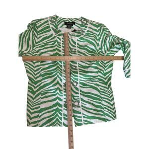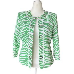 Peck & Peck Green and White Zebra Print 3/4 Sleeve Jacket Women's Size 14 Animal