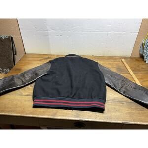 This VTG 90s Polo Ralph Lauren Varsity Jacket in black is a stylish and classic piece perfect for the fall and winter seasons. Made with wool and leather materials, this mid-length jacket features a stand-up collar and snap closure for a casual yet put-together look. The jacket is a Men's XL size and is inspired by vintage varsity styles, making it a versatile option for everyday wear or special occasions. Made by Polo Ralph Lauren, this jacket exudes a preppy and timeless vibe that is sure to turn heads.pre owned good condition we ship fast measurements are in the pictures