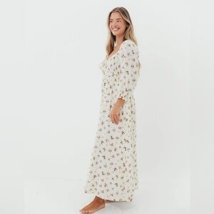 Worth Collective long sleeve dress, cream with brown florals. Size small, 100% cotton, wore once to baby shower