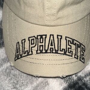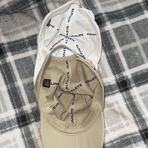 Pair of Alphalete caps. Cream and tan colors. Perfect for any outfit. Used/just not my favorite colors…..25 the bundle ….