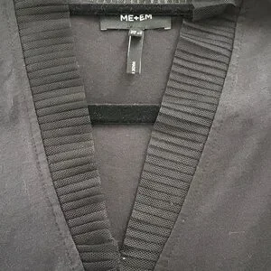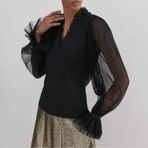 ME+EM black blouse with pleated tulle sheer sleeves. And tulle trim around v-neck. Chic statement for holiday parties or any formal event. Never worn.