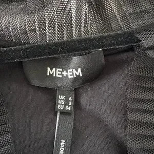 ME+EM Black Blouse with Sheer Tulle Sleeves