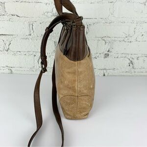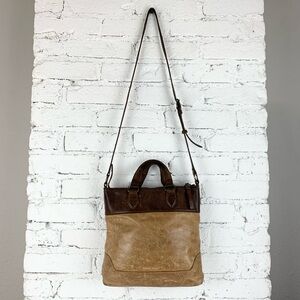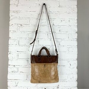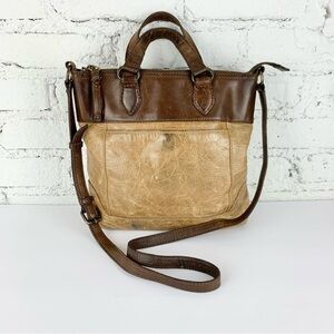 Frye Melissa Small Tote Crossbody Two Tone Brown Leather Purse Bag