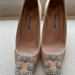 Manolo Blahnik Nude Heels with Crystal Embellishments