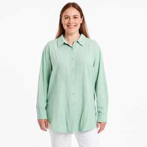 Soft Surroundings Teal Tencel Button Down Tunic Oval Buttons Style 10320 Size L