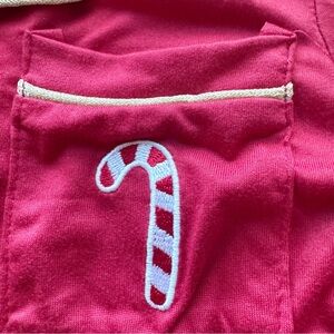 Shirt button down top with candy cane on chest pocket