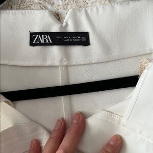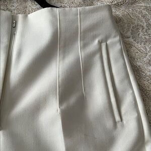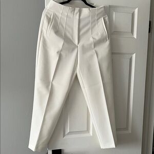 Elegant cream trousers. Tailored fit. Pleated front. Side pockets. Running on small