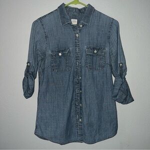 J. Crew factory chambray button down long sleeve roll tab shirt size xs