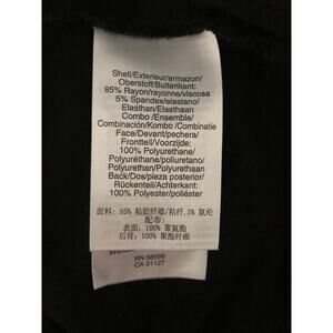 95% rayon, 5% spandex, machine wash, long sleeve, faux leather detail, side ruching