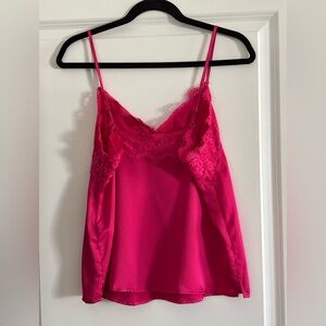 SOLD Abercrombie & Fitch Hot Pink Lace Trim Satin Cami Tank