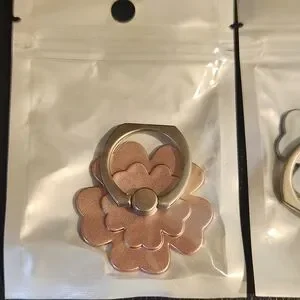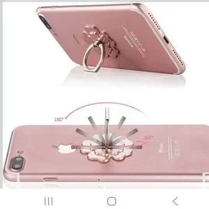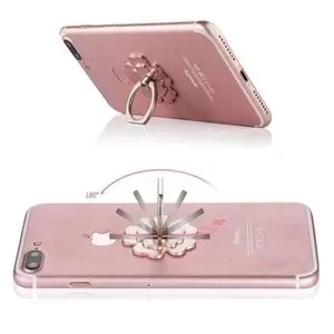 Stylish flower-shaped phone ring holder. Available gold, silver, and pink.