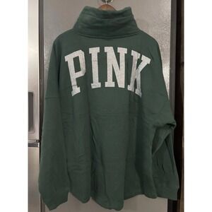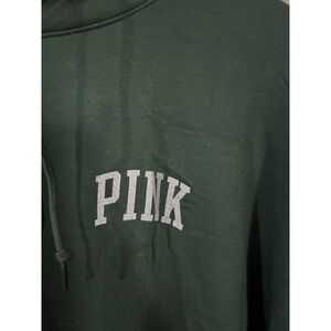 PINK VICTORIA'S SECRET Women's Large GREEN SILVER GLITTER Logo HOODED Long SHIRT