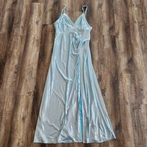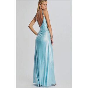 Retrofete Yesi Dress in Blue Silver Size Small Metallic Maxi Spaghetti Straps