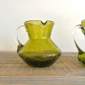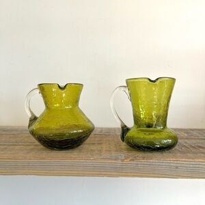 green crackle art glass pitchers set of 2