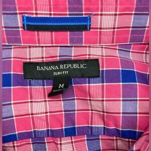 Banana Republic Men's Button Down Slim Fit Pink Plaid Long Sleeve Shirt Size Medium