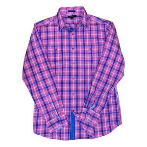 Banana Republic Men's Button Down Slim Fit Pink Plaid Long Sleeve Shirt Size M
