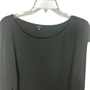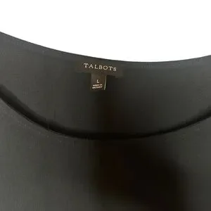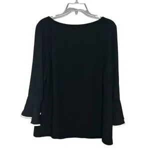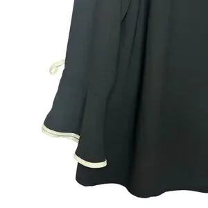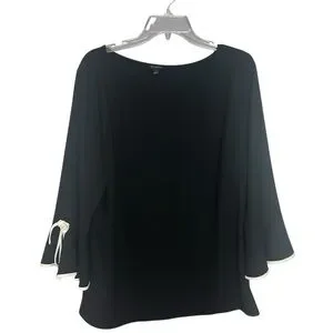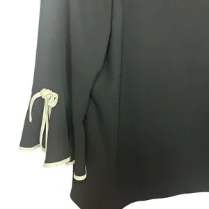 Talbots black bell sleeve blouse tie cuffs trim detail size large