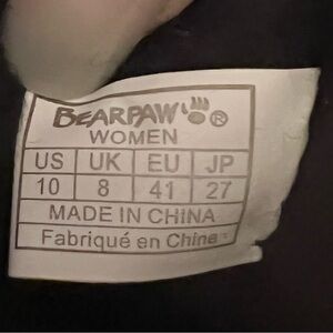 These Bearpaw woman’s SZ 10, black, suede leather, snow boots have a cushy wool blend lining that make them extra comfy and warm! Although I tried them on in the store and bought one in each color, they were still a bit too snug on me. I only wore them once.