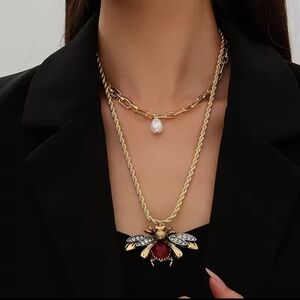 Gold and Red Bee🐝 Pendant Necklace