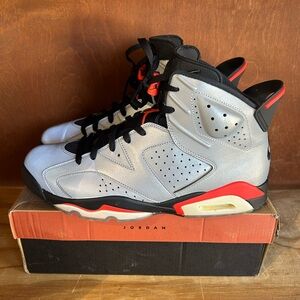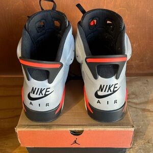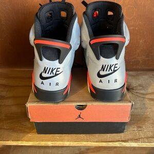 Elevate your look with these Jordan high-tops. Sleek silver with bold red highlights. Ideal for any occasion.Pre owned comfortable pair with minimal wear. No original box ๐ฆ only for pictures. Great every day or occasional Sneaker choice.๐๐๐