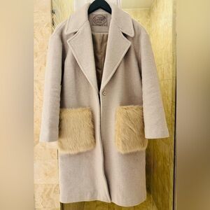 Elegant cream coat perfect for any occasion. Stay warm and stylish.