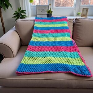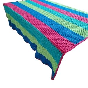 Vintage Handmade Crocheted Heavy Striped Blanket Multicolor Artcraf Blanket