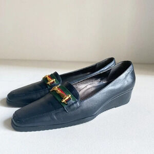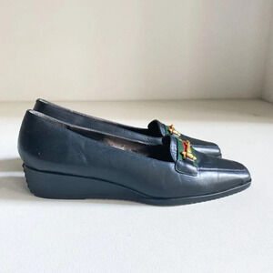 Vintage Town Shoes Horsebit Detail Black Low Wedge Loafers 38.5