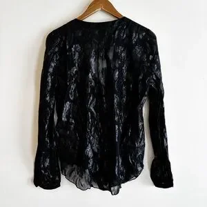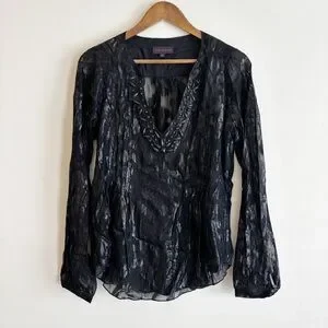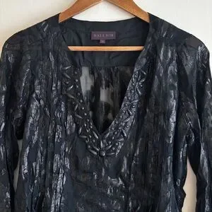 Hale Bob Beaded Burnout Silk Blouse Medium Black Summer Luxury