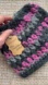 Crocheted pink and charcoal beanie with a charcoal colored brim, perfect for those messy-bun or ponytail days as there is a hole in the top, just for that purpose!