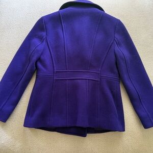 Add a pop of color to your cold-weather wardrobe with this stunning royal purple Talbots peacoat. Crafted from a warm and durable wool blend, this double-breasted coat features classic tailoring with a modern twist.