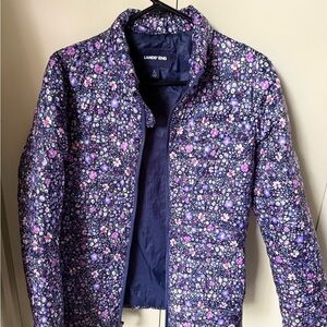 Lands' End Women's Floral Puffer Jacket - Purple and Pink