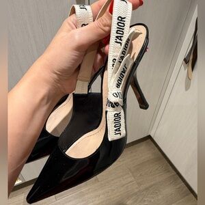 Dior Glossy Black Slingback Heels