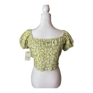 Embrace a fresh look with this charming floral green puff sleeve top. Perfect for casual outings, this top offers a blend of style and comfort.