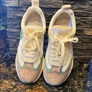 Tory Burch GOOD LUCK TRAINER Cream and Green Sneakers