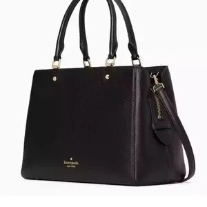 ♠️ Kate Spade Leila Medium Triple Compartment Satchel Black Pebbled Leather Bag