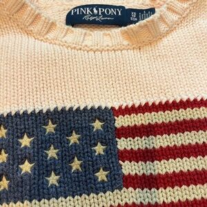 RARE Ralph Lauren Pink Pony American Flag Sweater USA Knit Crewneck - XS