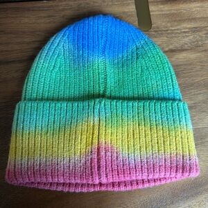 Brand New Acne Studios Pansy Rainbow Beanie - coral red/green multicolor
