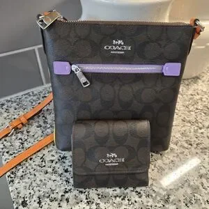 Coach Dark Brown and Orange, Purple Crossbody Bag with Wallet