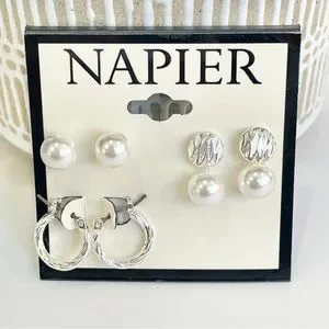 NWT Napier three pairs of silver and pearl earrings
