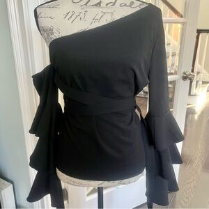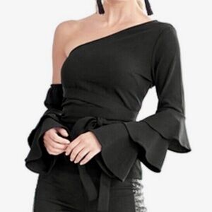 VENUS Ruffle Off the Shoulder One Sleeve Tie Waist Top